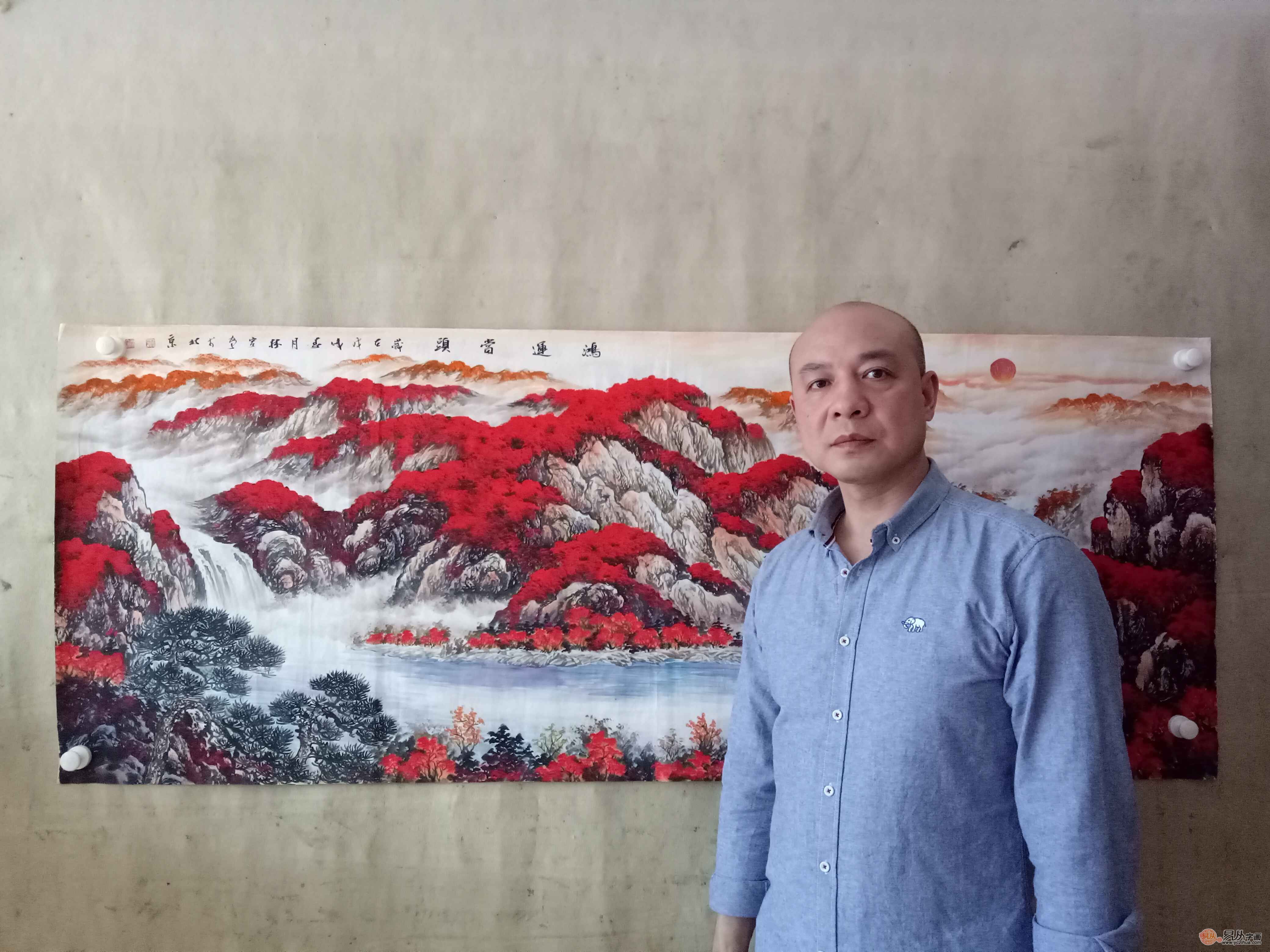 - 千山红遍 画家徐坤连山水画《千秋笔墨惊天地,万里云山入画图》
